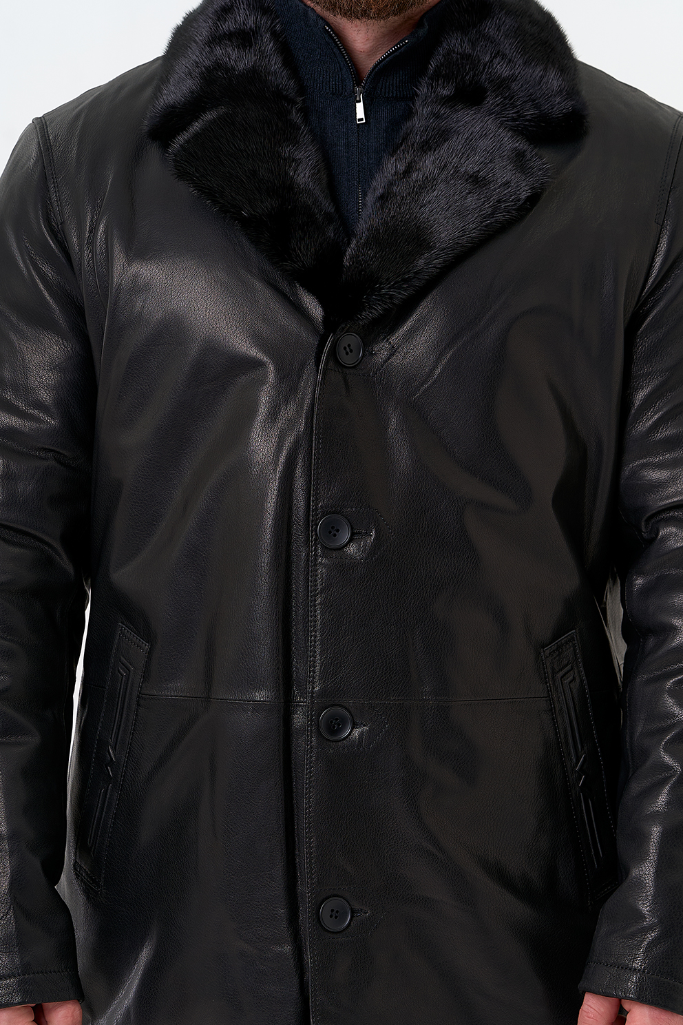 Тип ворота - английский воротник, отделка мех норки
