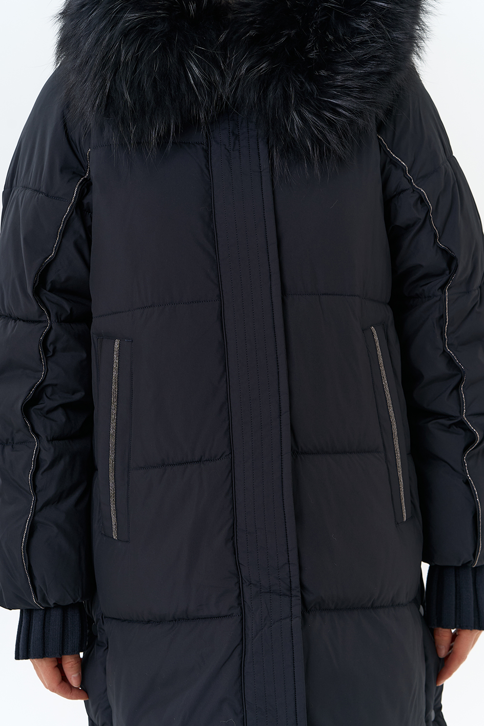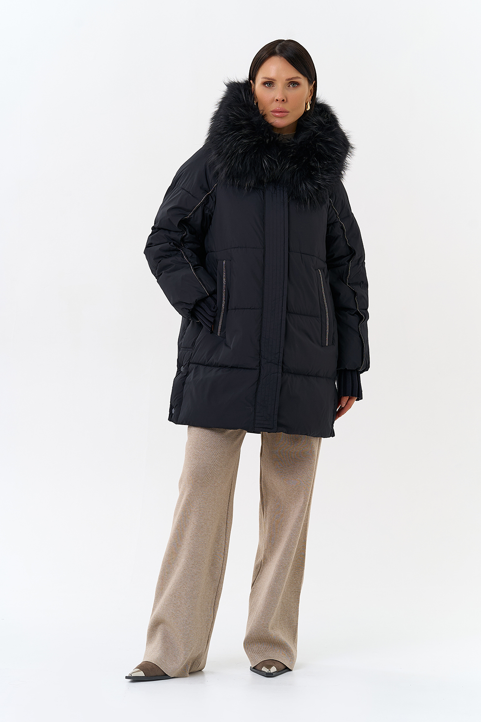 Крой воротника - капюшон, отделка енот